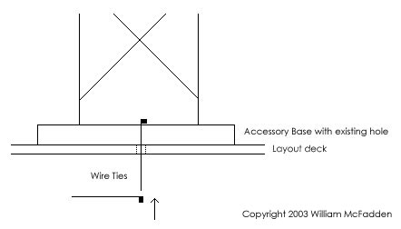 matching holes in the layout and use a "U" of wire to secure to the