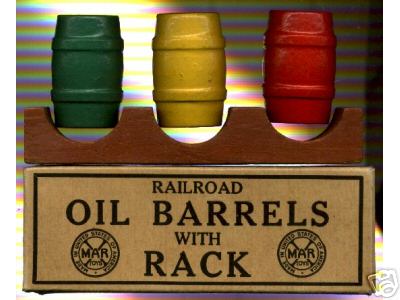 genuine Marx "Railroad Oil Barrels with Rack" on Walt Hiteshew's Marxtin.