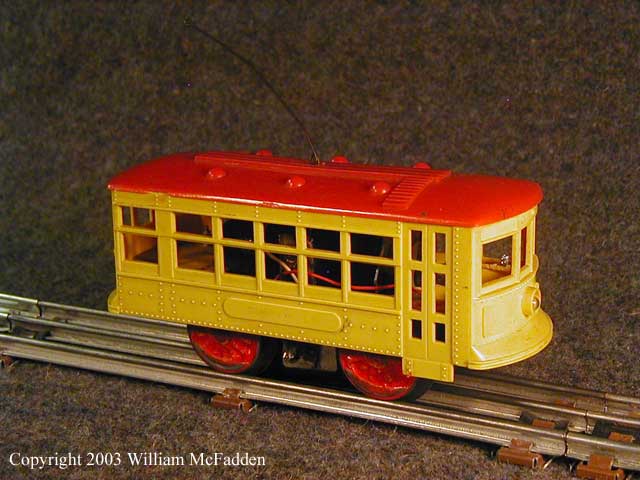 | (no number) | trolley --custom-- | yellow/red | this is a plastic Dinkyville Trolley body into which a previous owner had installed a Marx non-reversing motor | |||