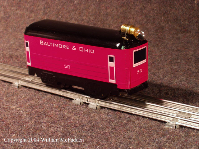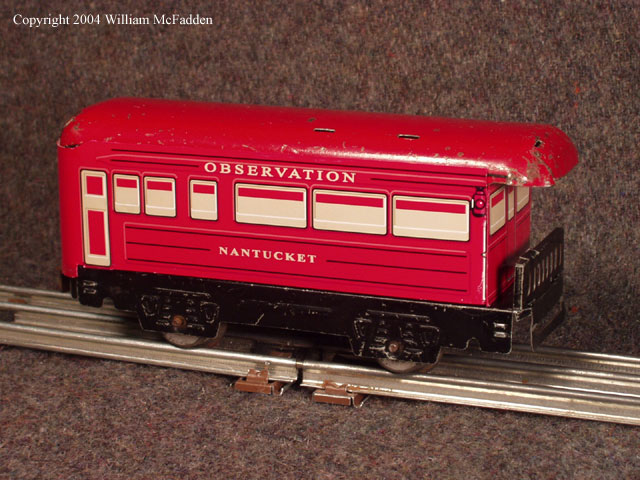 | (no number) | observation --custom-- | "Nantucket" | red; black frame | FauxToys Railroad Wrap conversion of a #556 caboose; riveted coupler | |||