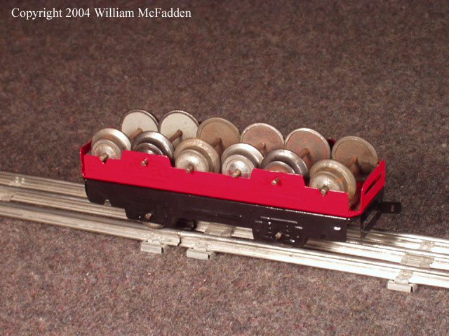 Plastic with Eight Wheels Plastic with Four Wheels 3/16" Scale Tin-Lithograph 6" Tin: Round-End Frames | Square-End Red-Litho Frames | Square-End Black Frames |