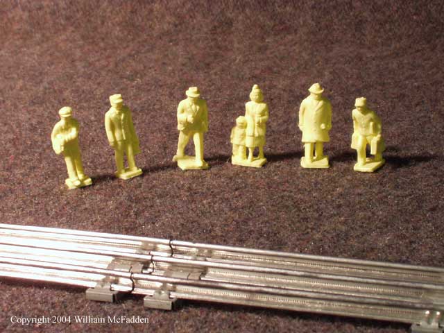 | (number?) | six-piece railroad people set | cream | plastic; unpainted; these were purchased recently, but I am fairly sure that these are the same people that came with my 1969 Big Rail Work Train set | |||