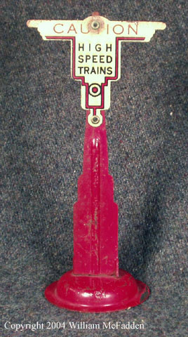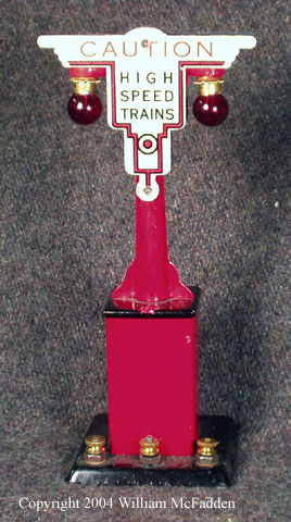 | (409) | twin light crossing flasher | red & black | "Caution High Speed Trains"; metal; installed on layout | |||