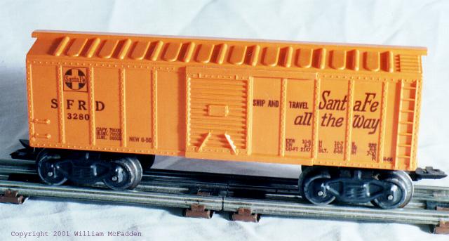 | 3280 | boxcar | AT&SF | orange | type g | "Santa Fe All the Way" | |||