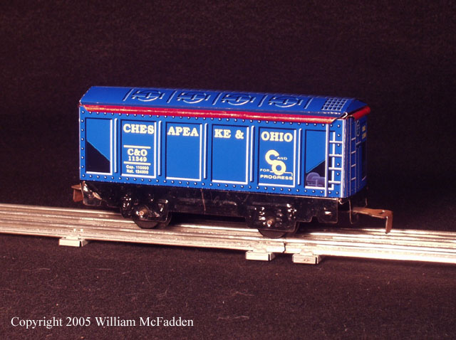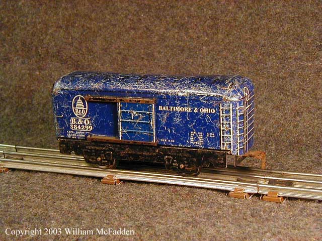 | 384299 | boxcar | Baltimore & Ohio | blue; black frame | opening doors; riveted couplers; black door guides; rough (1939-42) | |||