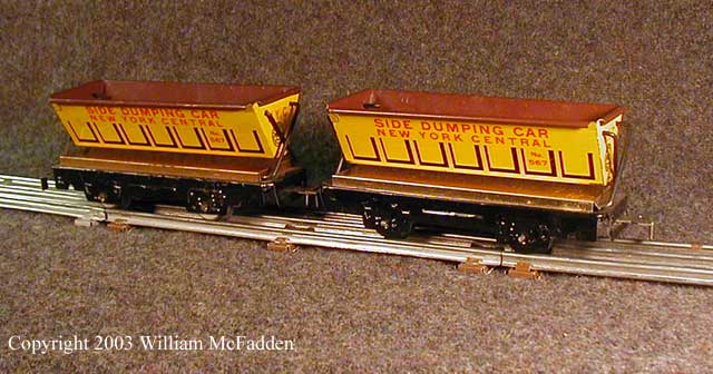 | 567 | side dump | New York Central | yellow/brown black frame | copper deck; plastic wheels; sliding couplers (1939-52) | |||