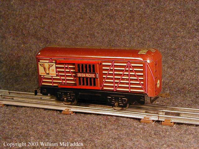 | 59 | stock car | Union Pacific | brown; black frame | opening doors; riveted couplers; red door guides (1939-52) | |||