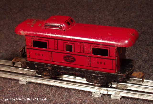 | 694 | caboose | New York Central | red/black; black frame | two riveted couplers (1936-37) | ||
