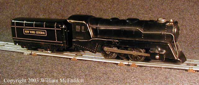 | (551) | New York Central | black | oil tender; rivets; riveted couplers; white details have yellowed (1937) | |||