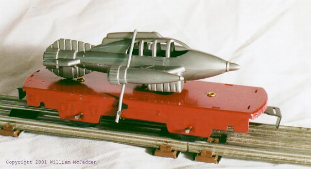 I am looking for an electric MERCURY. 1 Montgomery-Ward Christmas catalogs included #666 in 1955, 1957-1958, & 1960. 2 Montgomery-Ward Christmas catalogs included electric #400 in 1953, 1955-1958, & 1960. 3 Montgomery-Ward Christmas catalogs included mechanical whistling MERCURY in 1950. Source: "The Toy Train Department, Volume 2" |