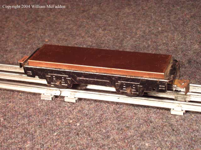 | (no number) | flat car --custom-- | black/brass | this is the frame and deck from a #567 side-dump car; plastic wheels | ||||